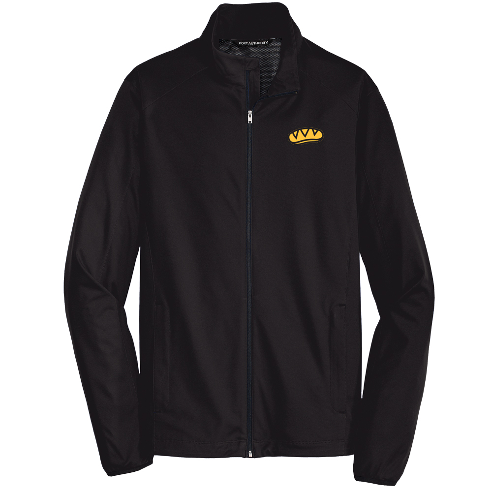 100% polyester knit shell bonded to a water-resistant film insert and a 100% polyester mesh interior 1000MM fabric waterproof rating 1000G/M2 fabric breathability rating Full-length interior storm flap with chin guard Reverse coil center front zipper Front zippered pockets Elastic binding at cuffs Open hem with adjustable locking drawcord